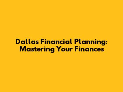 Dallas Financial Planning: Mastering Your Finances