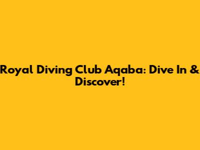 Royal Diving Club Aqaba: Dive In & Discover!