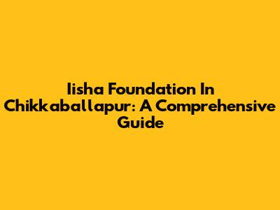 Iisha Foundation In Chikkaballapur: A Comprehensive Guide