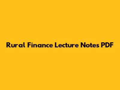 Rural Finance Lecture Notes PDF