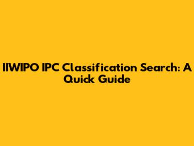 IIWIPO IPC Classification Search: A Quick Guide