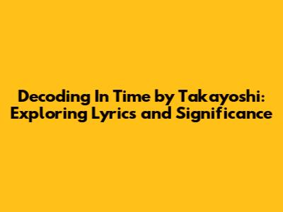 Hey everyone! Today, we're diving deep into Takayoshi's track, "In Time." This song is a real gem, and we're going to explore the lyrics, break down the meaning, and see what makes it so special. If you're a fan of Takayoshi or just love digging into song meanings, you're in the right place. We'll be looking at the context, the possible interpretations, and the overall impact of the song. So, grab your headphones, get comfy, and let's get started on this musical journey. It's time to unlock the secrets behind "In Time"! This is the ultimate guide to understanding the song's depth, and by the end, you'll have a whole new appreciation for Takayoshi's artistry.