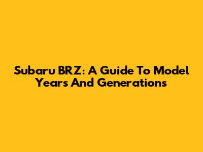 Subaru BRZ: A Guide To Model Years And Generations