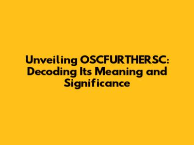 Decoding OSCFURTHERSC: What Does It Really Mean?