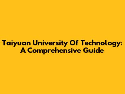 Taiyuan University Of Technology: A Comprehensive Guide